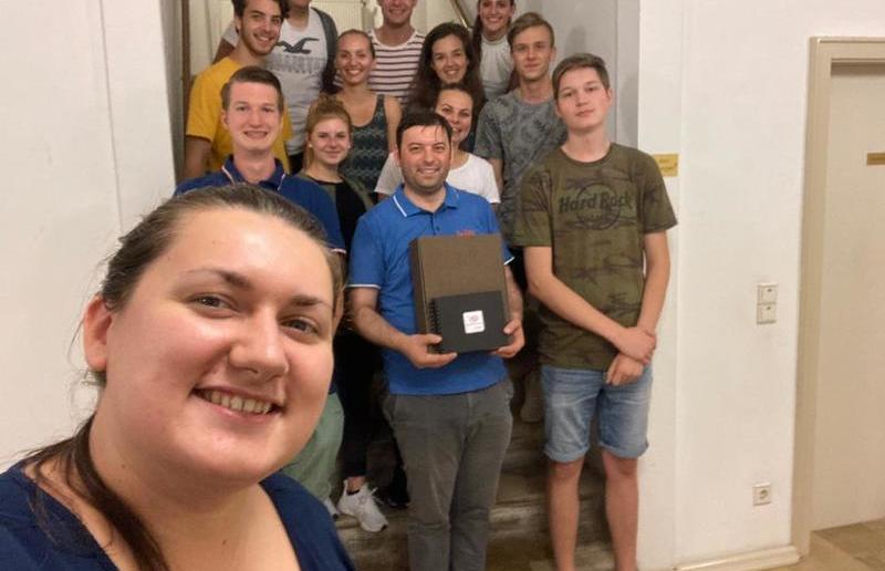 Nachdem wir ab dem 26. August auf Jugendreise waren, entschlossen wir uns, unseren Kaplan schon vor seinem letzten Wochenende in Gnas zu verabschieden. Dazu trafen wir uns ganz "geheim" am Abend des 25. August und überraschten unseren Kaplan beim Ausklang des Abends in der Küche des Pfarrhofes. Wir überreichten ihm zum Abschluss einige Erinnerungen, die ihn auch in Zukunft an die schöne Zeit in Gnas erinnern sollten. Wir wünschen ihn auf diesem Weg nochmals eine schöne Zeit in Leutschach und danken unserem Marius für die schöne Zeit.