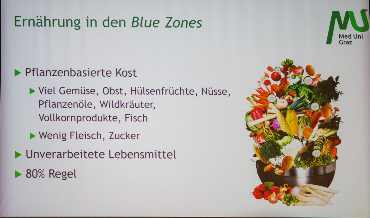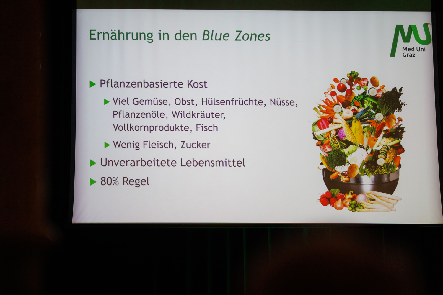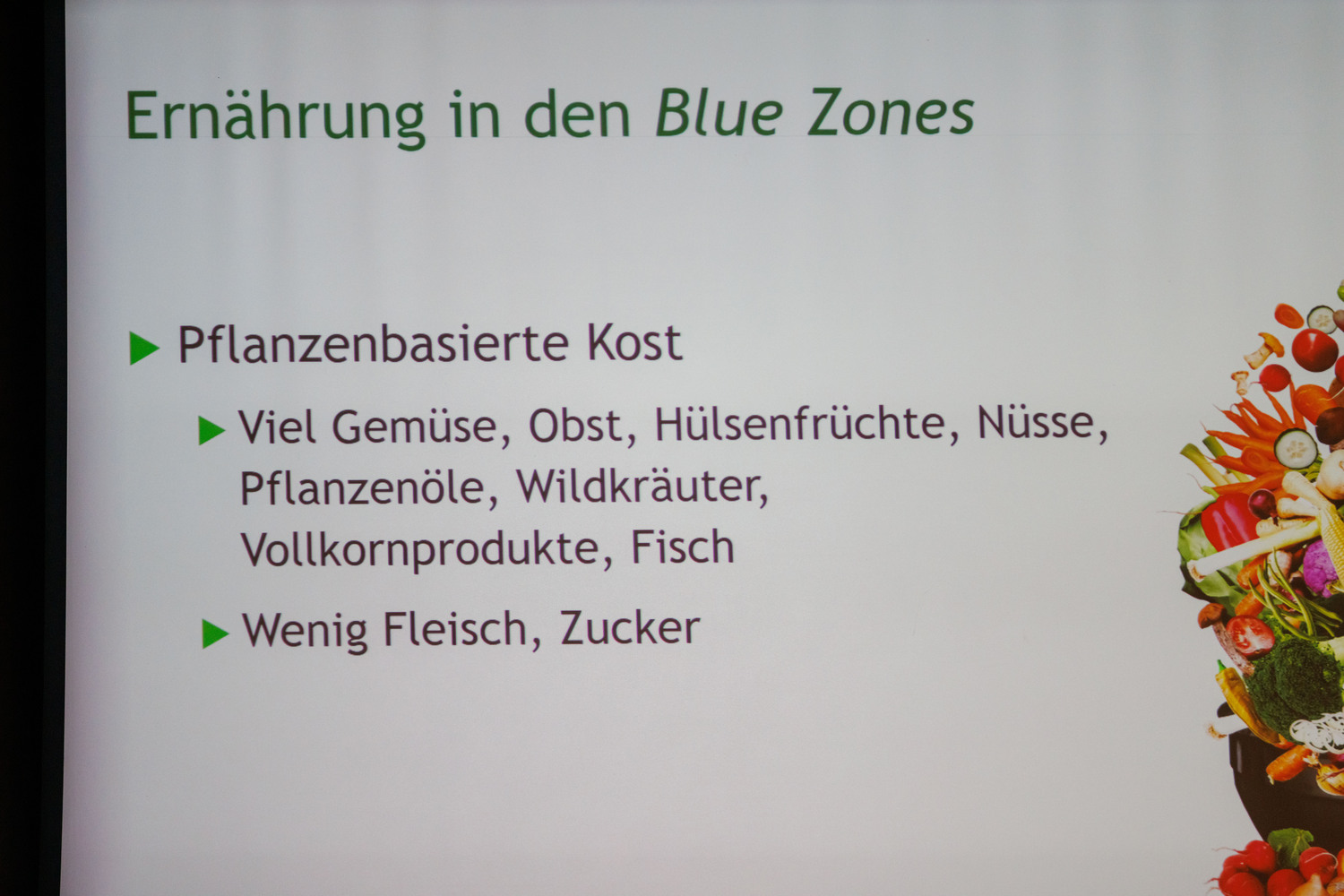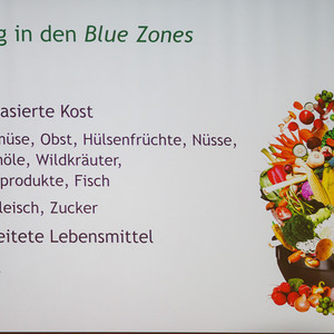 Moderate Bewegung, Mahlzeiten mit regionalen unverarbeiteten Lebensmittel zubereiten, neugierig bleiben, um den Geist fit zu halten sowie das Aufrechterhalten sozialer Kontakte waren u.a. Eckpunkte der Präsentationen der Vortragenden aus den Bereichen der Ernährungswissenschaft, dem Seniorengedächtnistraining und der Sportwissenschaft.