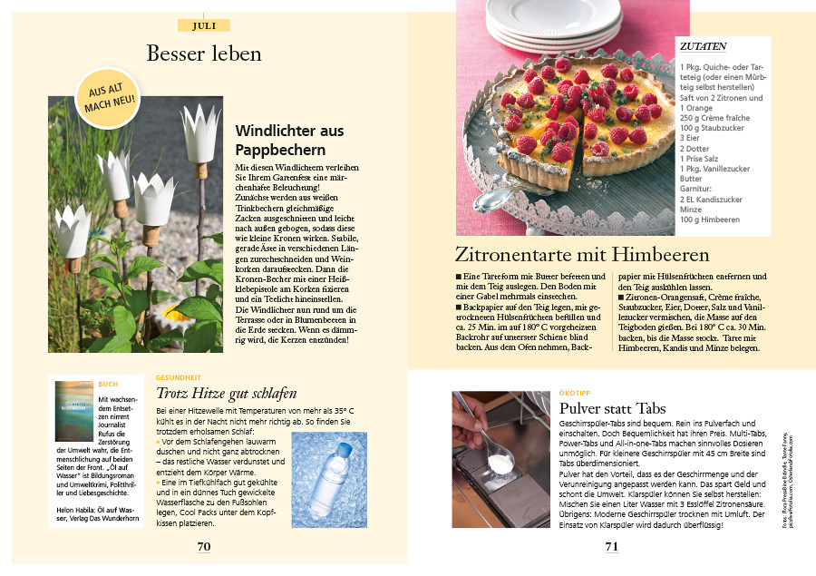 • praktische Tipps für einen nachhaltigen Lebensstil mit Rezepten der Saison, Upcycling-Ideen, Ökotipps für Haus und Garten