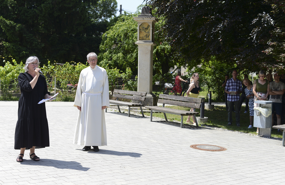 Anschließend eröffnete Katrin Windischbacher die Ausstellung "Reichtum versus Armut" und bedankte sich gleichzeitig bei Pfarrer Wolfgang Schwarz für die "Aufnahme" der Figuren. Diese wandernde Kunstinstallation wurde im Jahr 2019 konzipiert und steht nun an ihrem 21. Ausstellungsort.