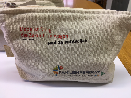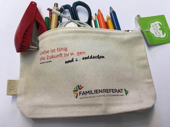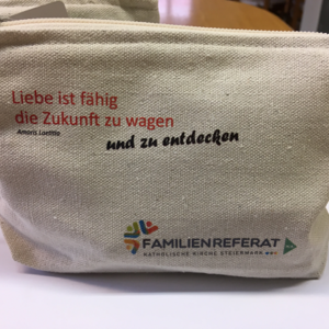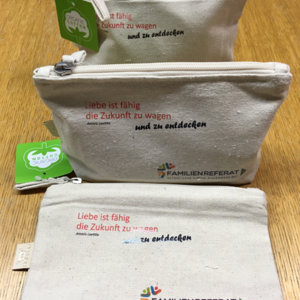 Die handliche Kulturtasche (Glumpert-Sackerl, Krimskrams-Beutel, …) mit dem Familienreferatslogo ist eine praktische Aufbewahrungsmöglichkeit diverser Utensilien für Handtasche, Rucksack, Handgepäck, Reisekoffer, …