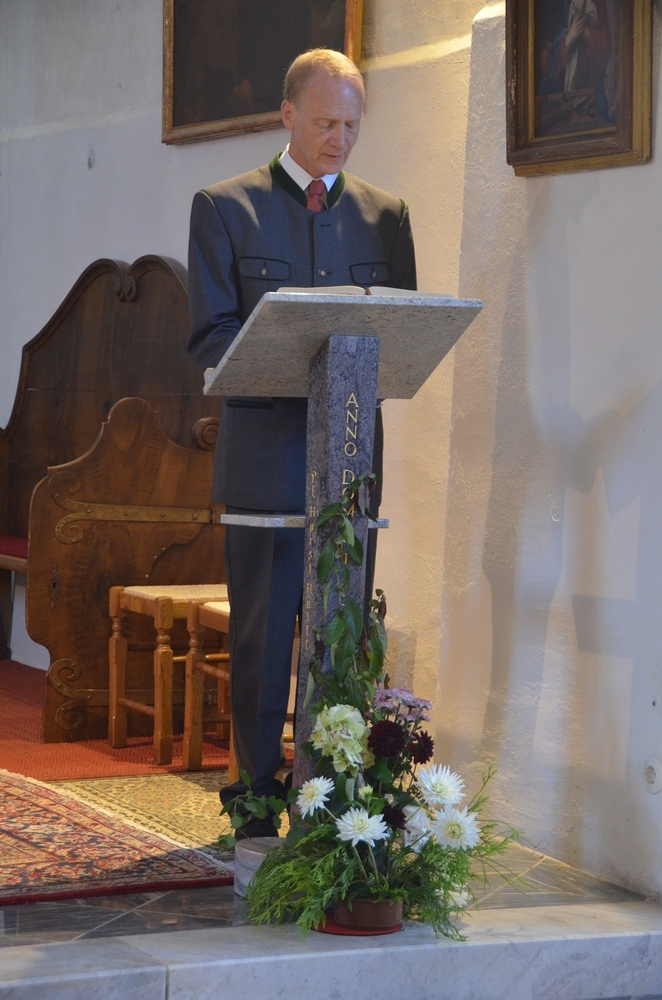 In seiner Predigt hob Pfarrer Dr. Hüttl die wichtige Rolle der guten Hirten hervor. Diese waren für die Tiere des Dorfes verantwortlich. Sie waren die Grundlage dafür, dass die Menschen früher überleben konnten. Die Rolle der "guten Hirten" geht aber weiter, bis heute: In den Behörden, Ämtern in Gesellschaft und Staat sind verantwortungsvolle Menschen wesentlich, um Frieden und Wohlstand zu schaffen und zu erhalten. Und natürlich gehören zu diesen guten Hirten auch die vielen Menschen, welche im Hintergrund und als Freiwillige für unsere Gesellschaft tätig sind.