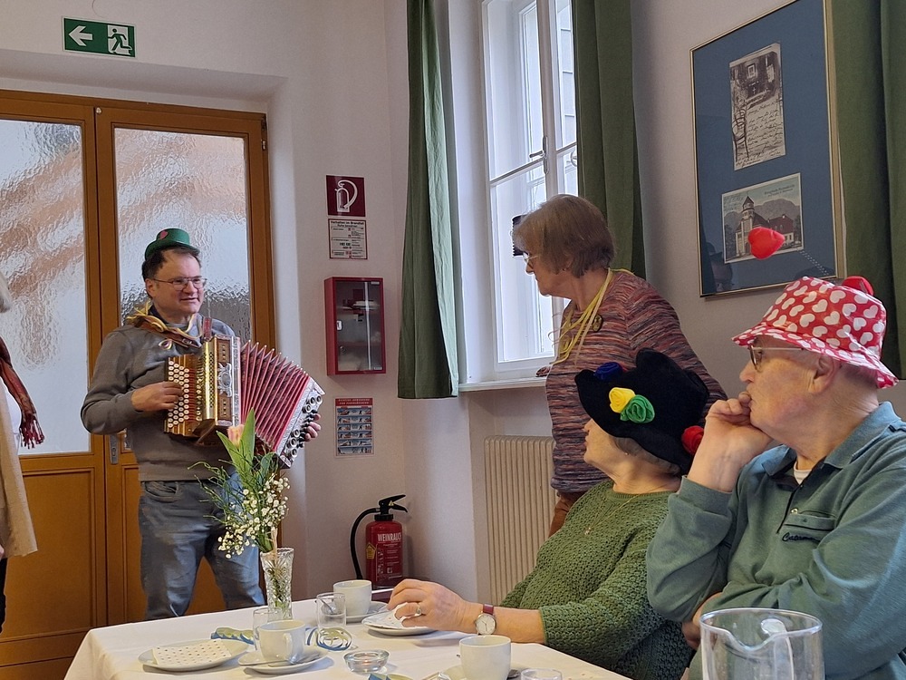 Am 13.2.2025 besuchten unser Team mit einigen Teilnehmern des Senioren-Pfarrkaffee´s das Treffen in der evangelischen Pfarrgemeinde. Dies war ein sehr unterhaltsamer Nachmittag mit Musik und lustigen Geschichten, dem Fasching entsprechend. Diese gegenseitigen Besuche bieten eine gute Möglichkeit zum Gedankenaustausch und wir werden sie 1x jährlich beibehalten.