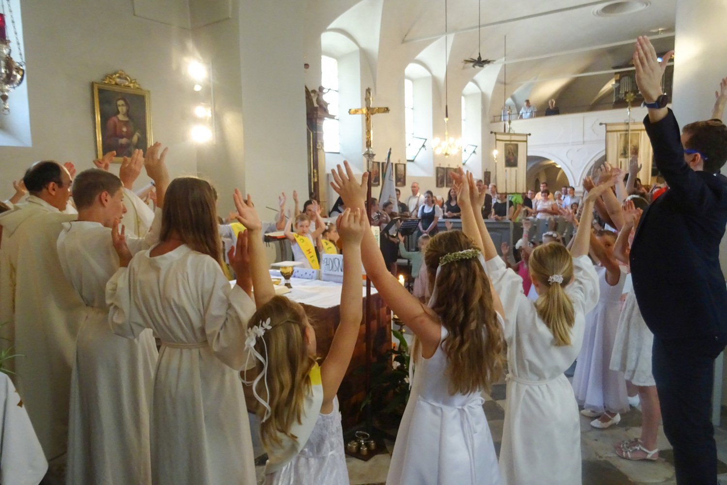 Heilige Messe mit anschließender Fronleichnamsprozession mit Pfarrer Johann Karner in Dobl.
