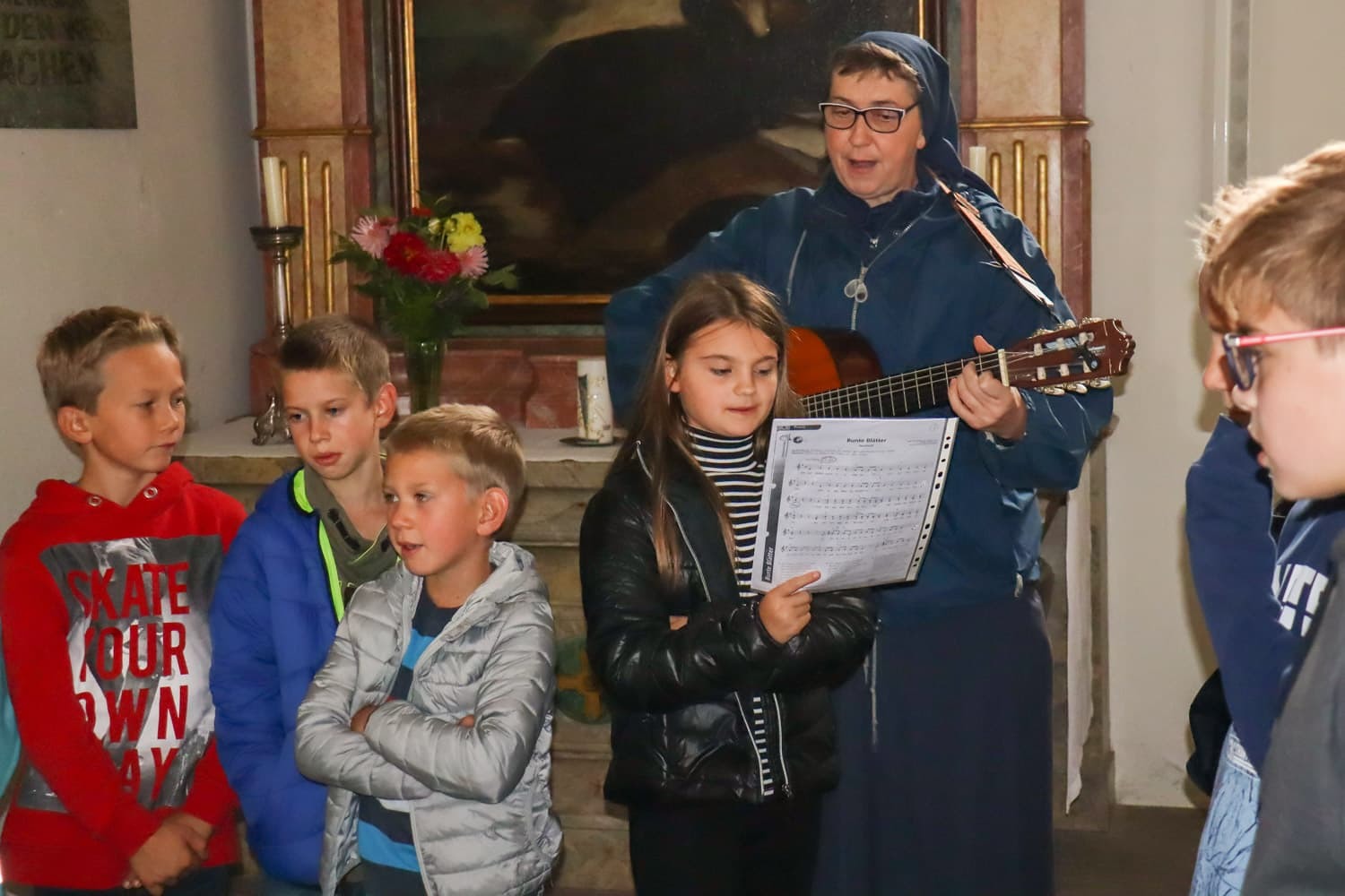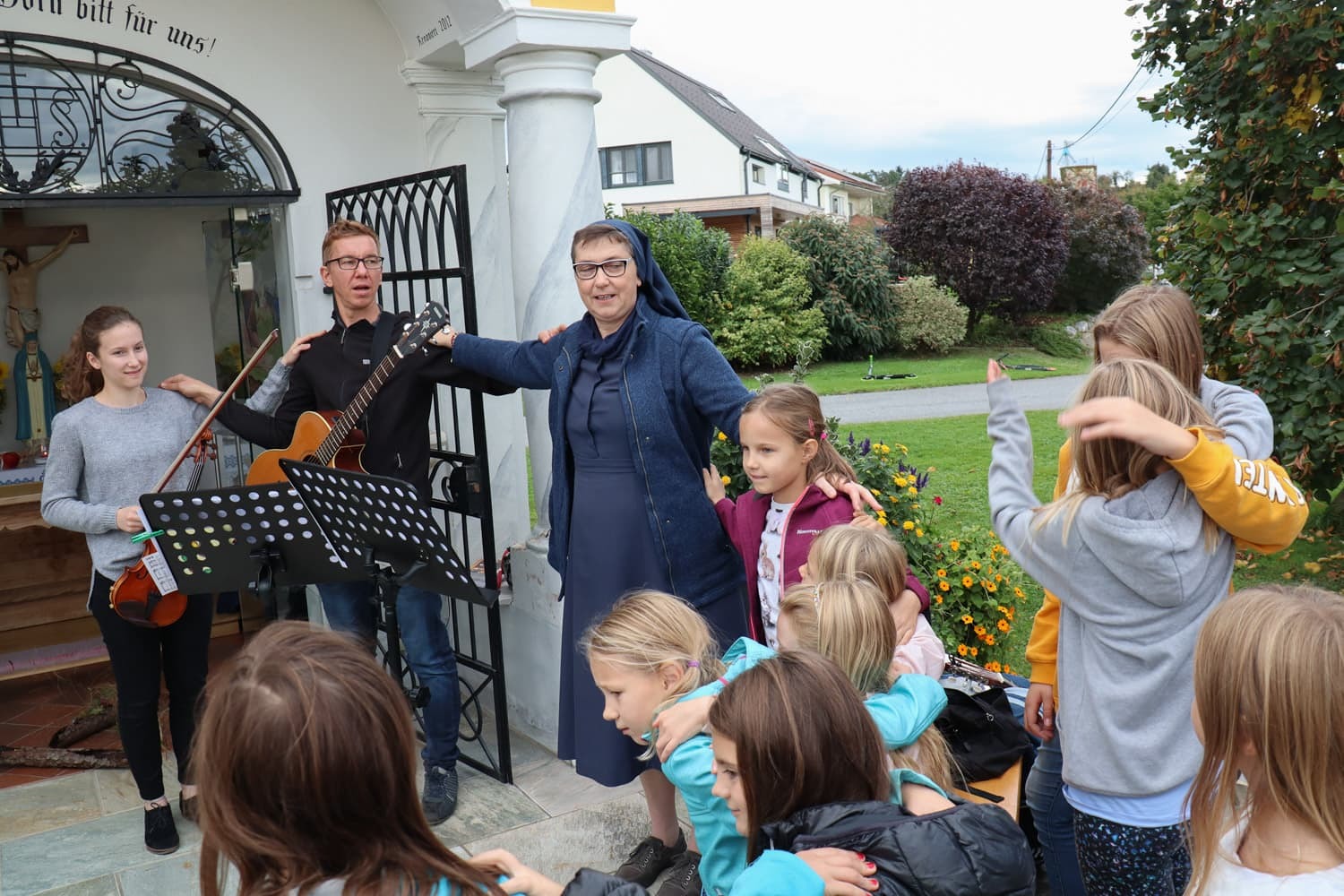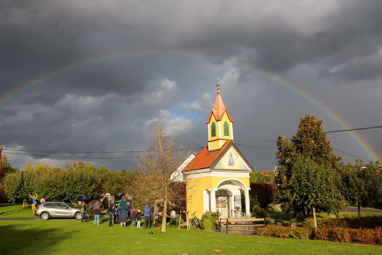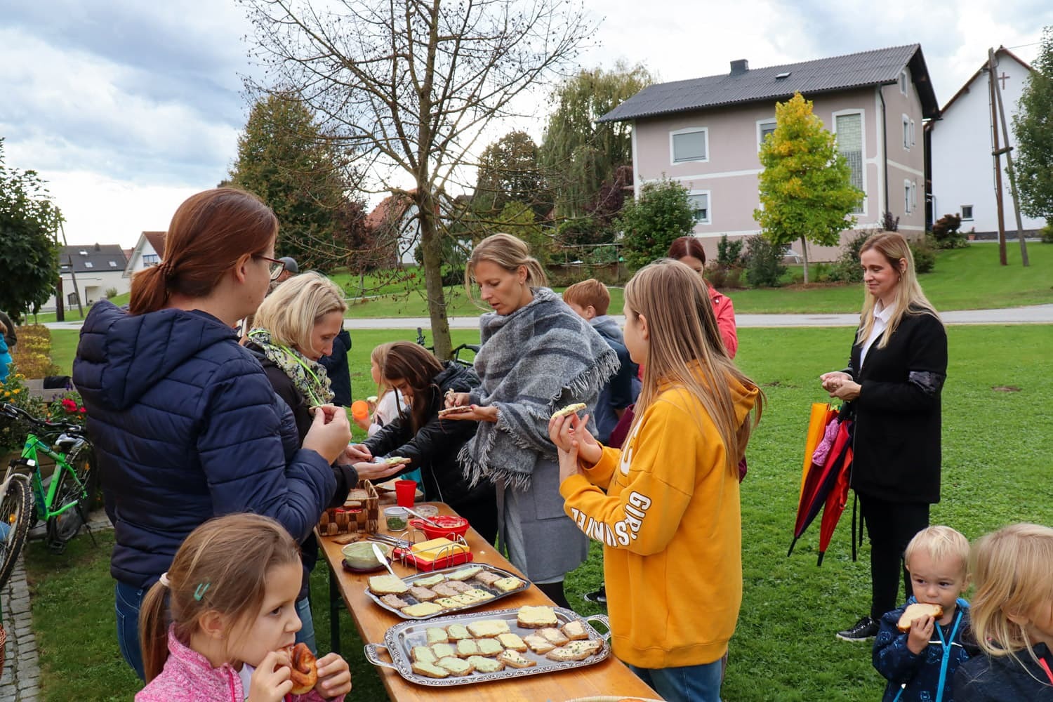 Die Familienwallfahrt führte diesmal von der Pfarrkirche nach Dobl-Dorf – aber nicht direkt. Mit einigen Stationen führte der Weg über den Oberberg durch den Kaiserwald nach Dobl-Dorf. Dort feierten wir dann eine Wortgottesfeier, nach welcher wir noch auf eine Jause eingeladen wurden.