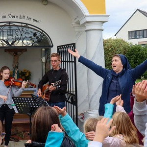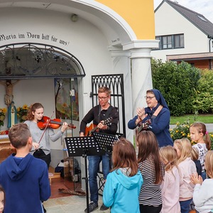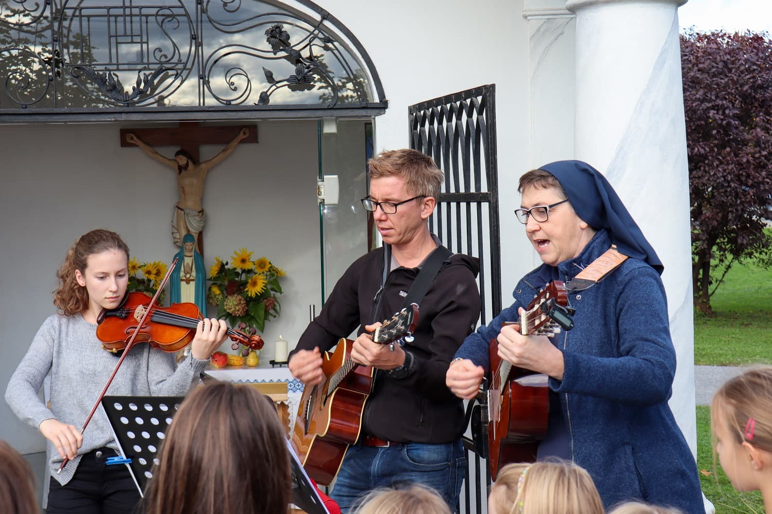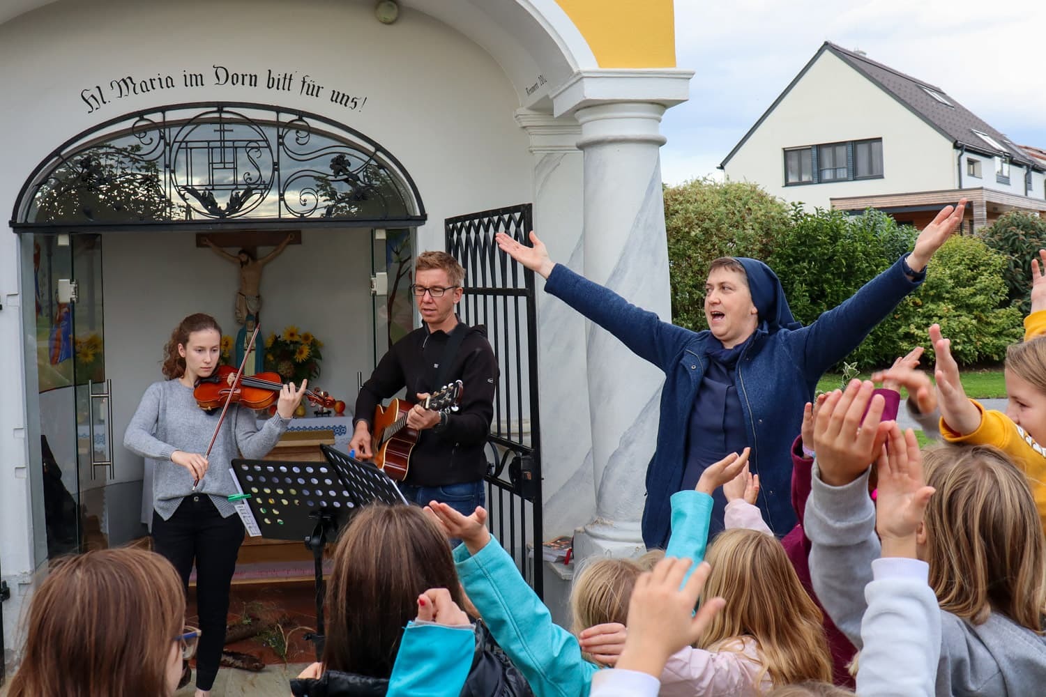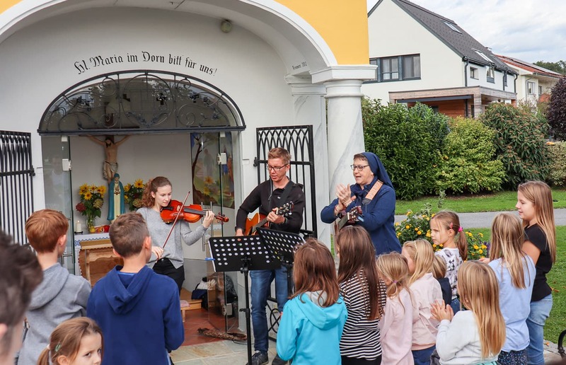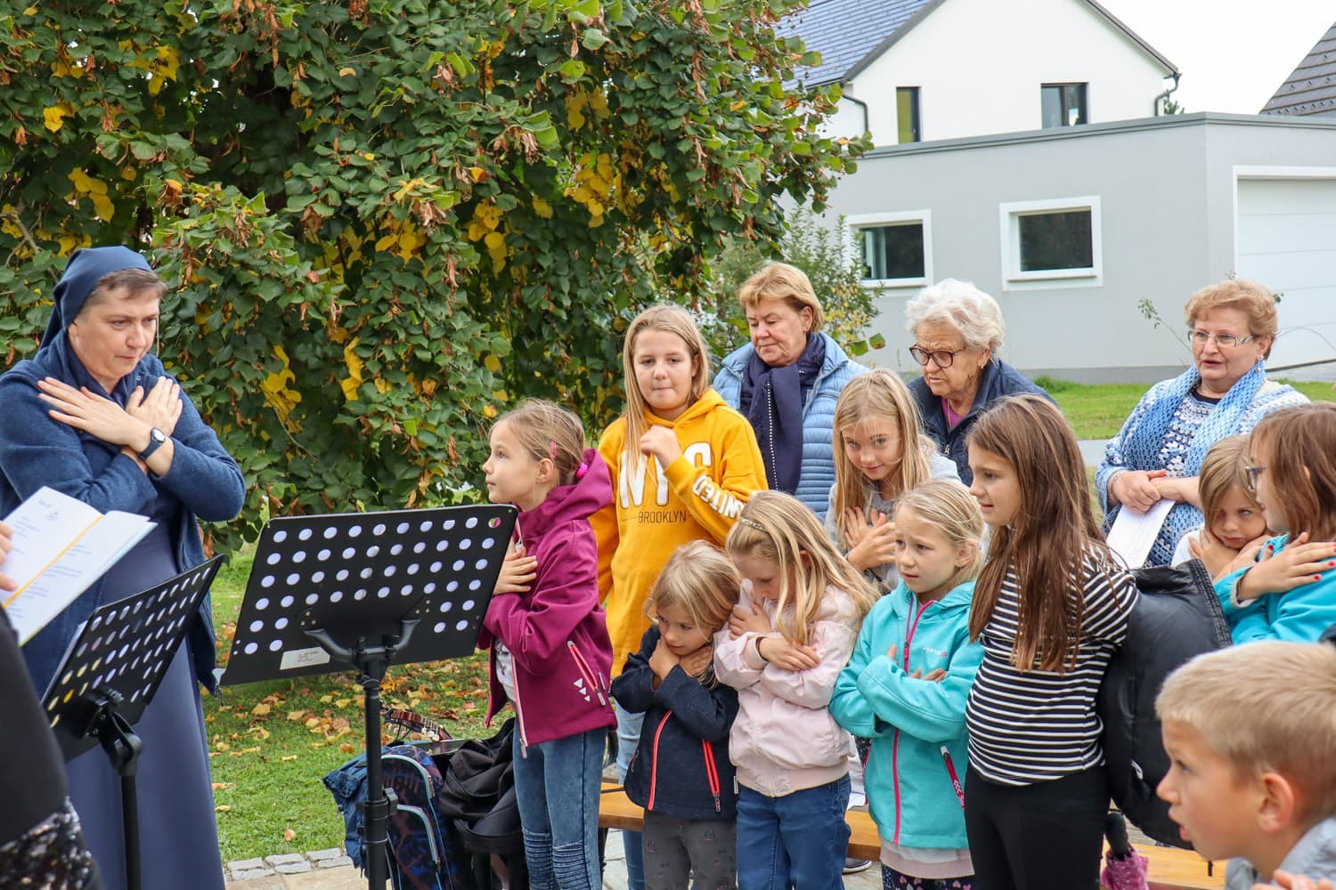 Die Familienwallfahrt führte diesmal von der Pfarrkirche nach Dobl-Dorf – aber nicht direkt. Mit einigen Stationen führte der Weg über den Oberberg durch den Kaiserwald nach Dobl-Dorf. Dort feierten wir dann eine Wortgottesfeier, nach welcher wir noch auf eine Jause eingeladen wurden.