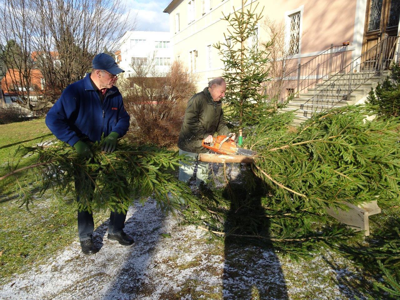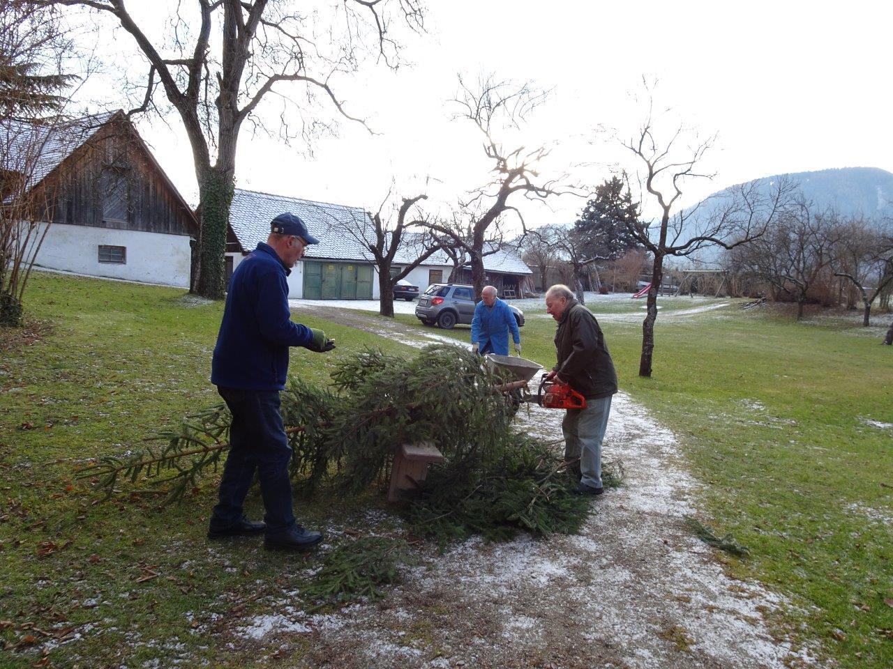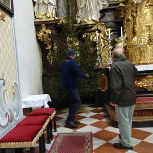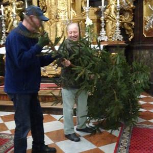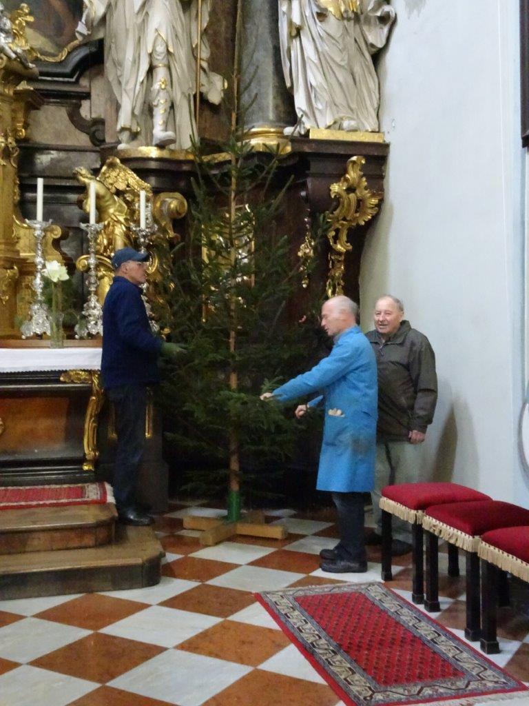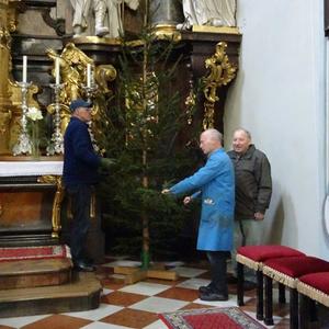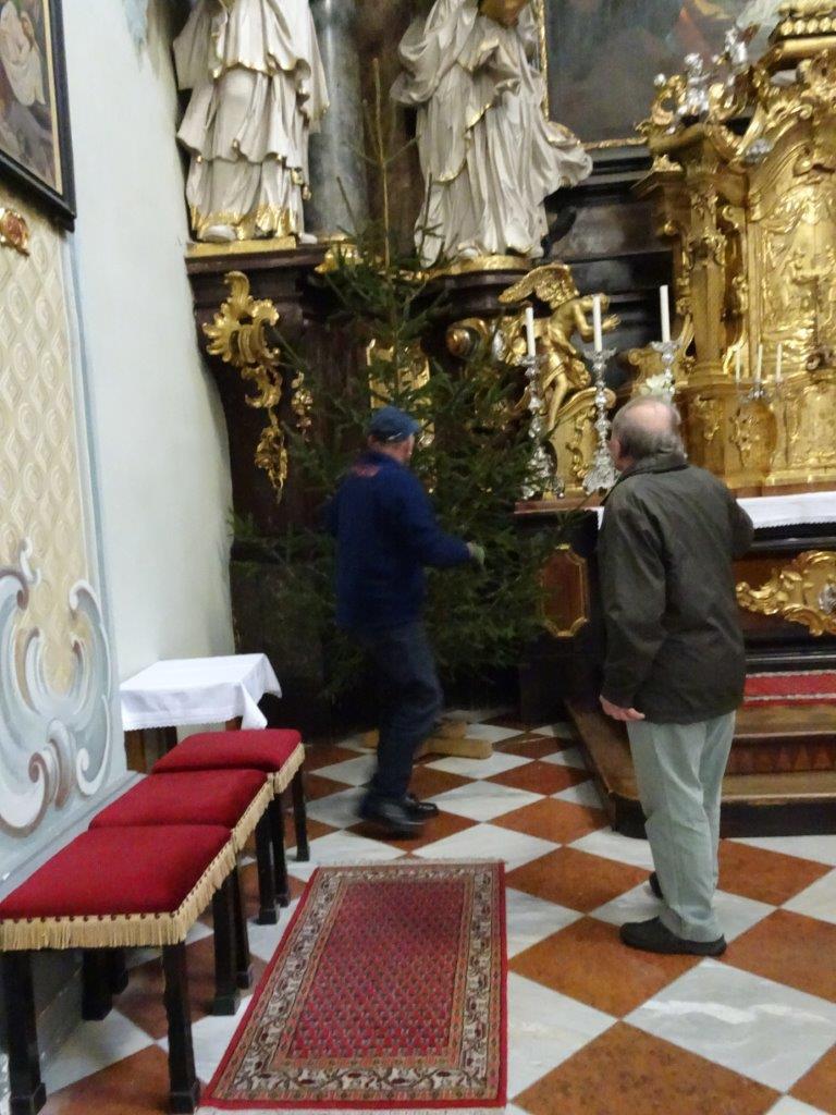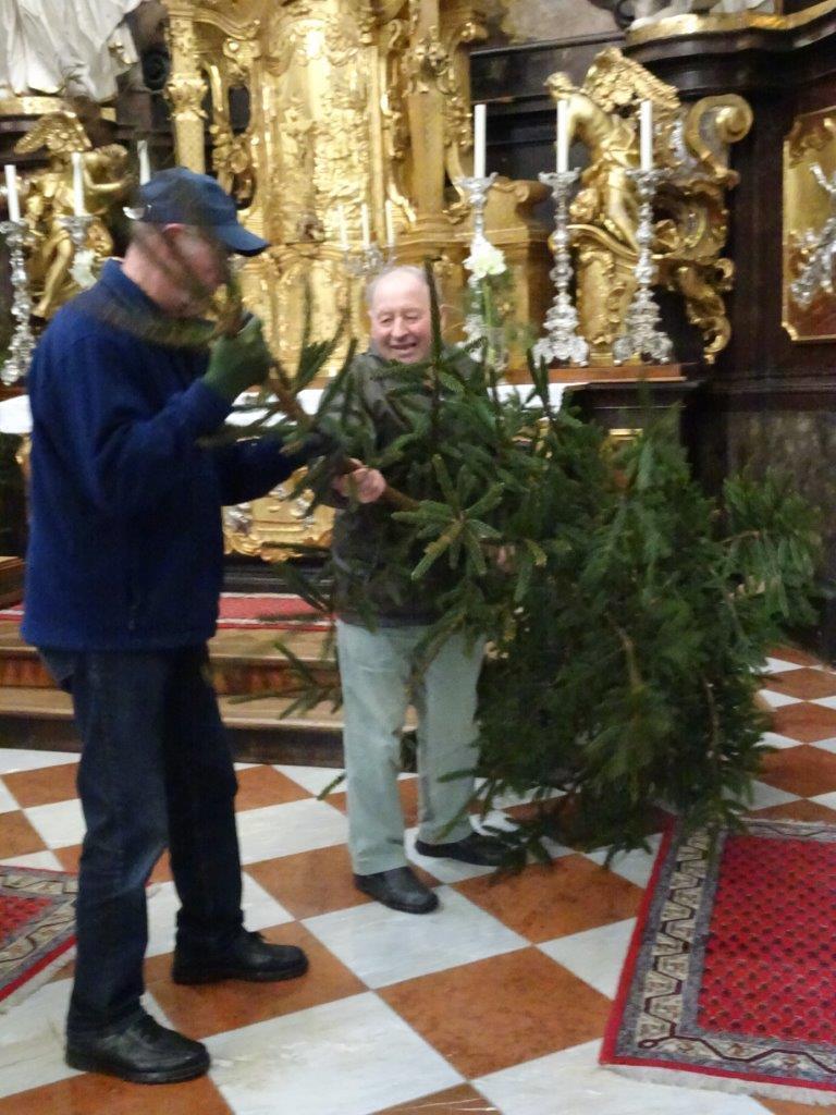 Drei tüchtige Pfarrmitarbeiter, angeführt von Hans Rappold vulgo Rebinger (bereits über 20 Jahre federführend), Manfred Wiesberger und Alfred Doberschek erklärten sich am 20. Dezember mittags bereit, die Christbäume für die Pfarrkirche (seitlich am Hochaltar), in der Siebenväter-Kapelle und in der Klausur aufzustellen. Die von der Forstverwaltung Mayr Melnhof zur Verfügung gestellten Christbäume wurden im Klostergarten fachkundig aufbereitet und dann an den vorgesehenen Plätzen positioniert.