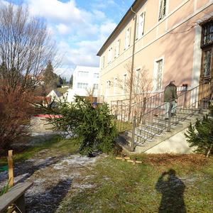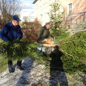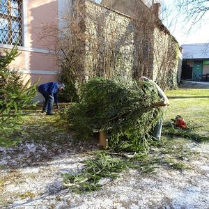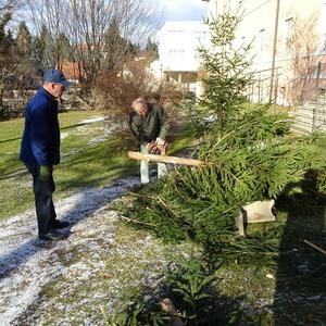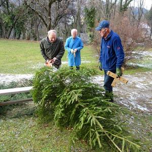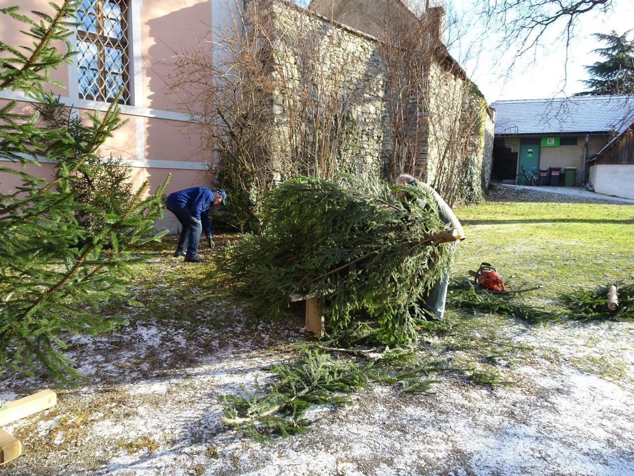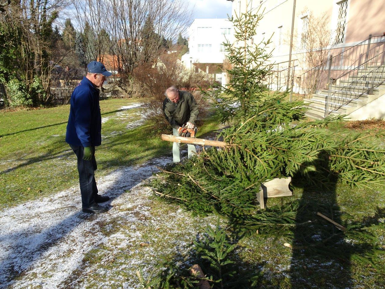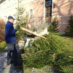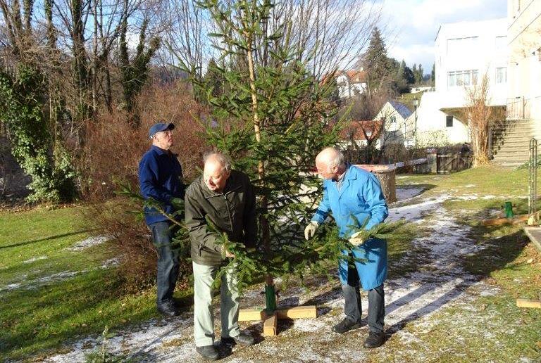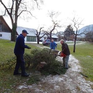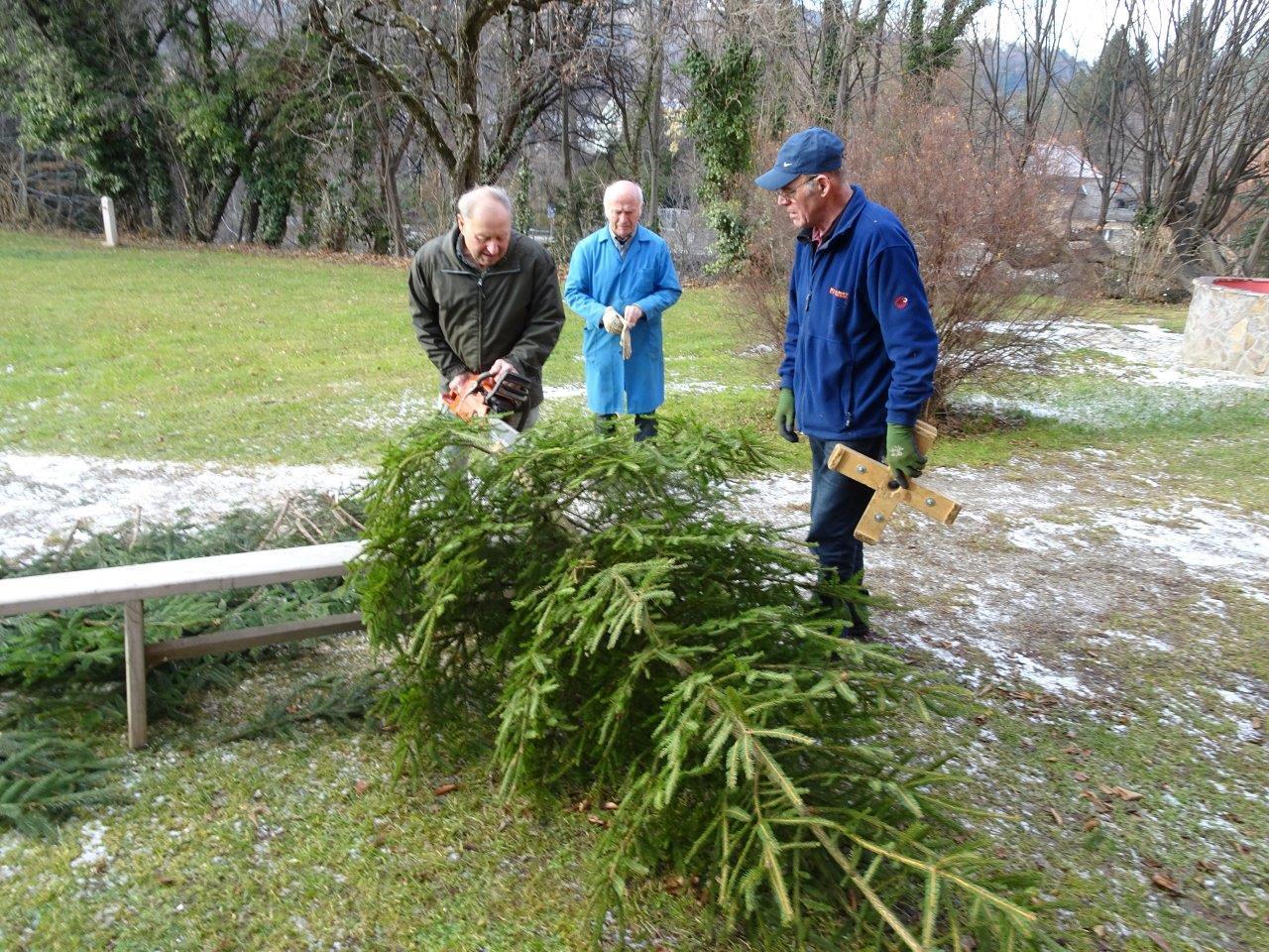Drei tüchtige Pfarrmitarbeiter, angeführt von Hans Rappold vulgo Rebinger (bereits über 20 Jahre federführend), Manfred Wiesberger und Alfred Doberschek erklärten sich am 20. Dezember mittags bereit, die Christbäume für die Pfarrkirche (seitlich am Hochaltar), in der Siebenväter-Kapelle und in der Klausur aufzustellen. Die von der Forstverwaltung Mayr Melnhof zur Verfügung gestellten Christbäume wurden im Klostergarten fachkundig aufbereitet und dann an den vorgesehenen Plätzen positioniert.