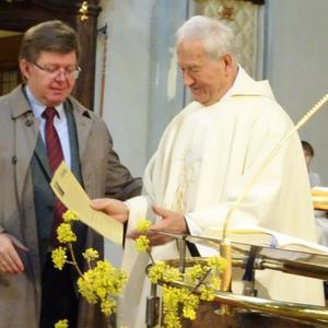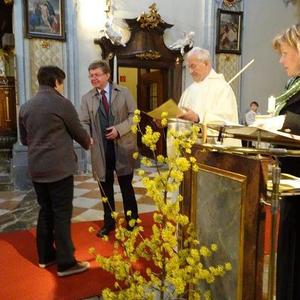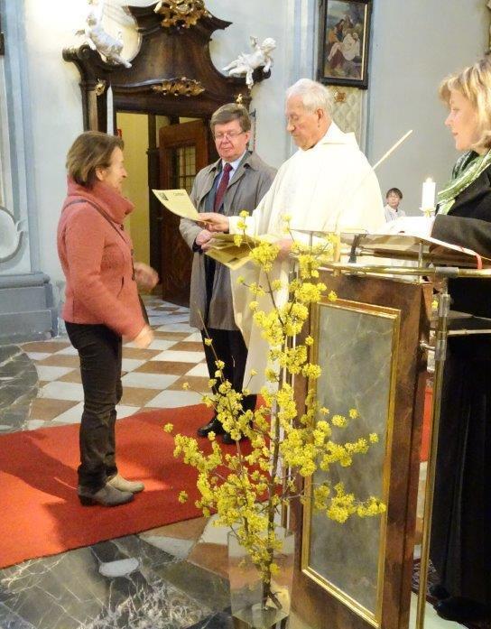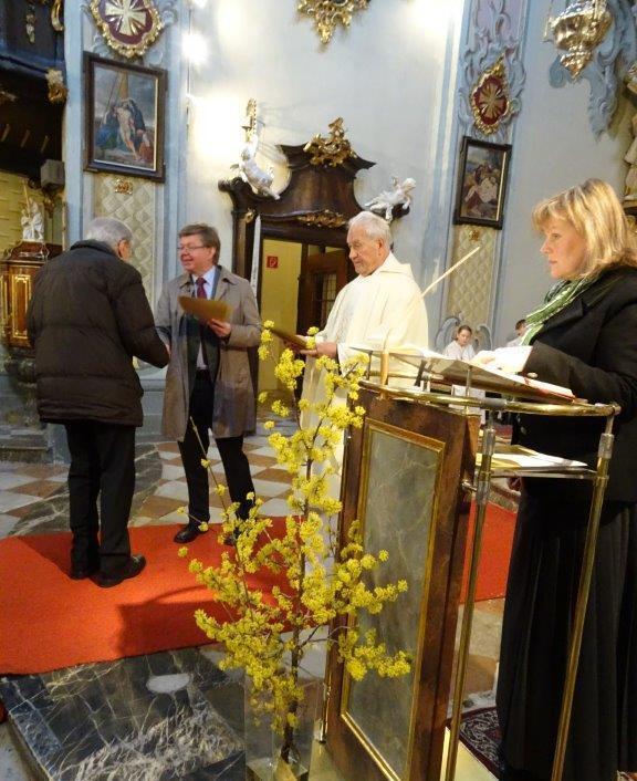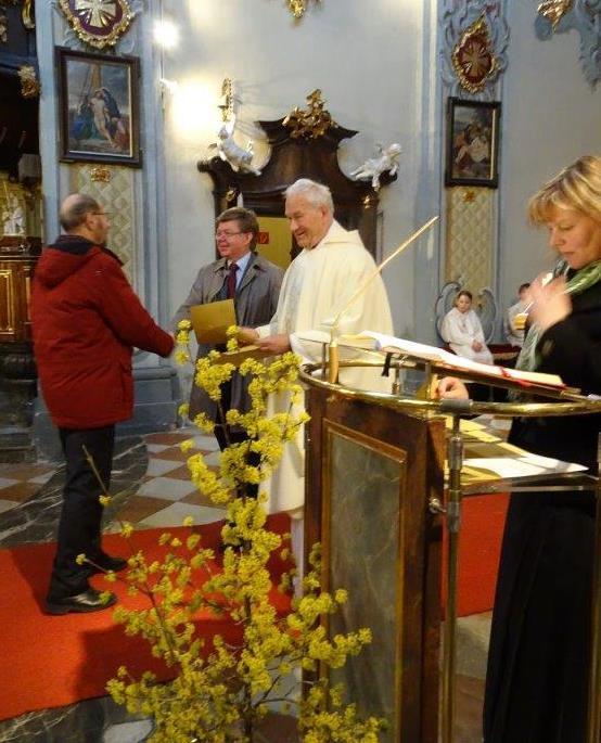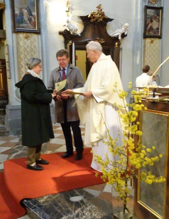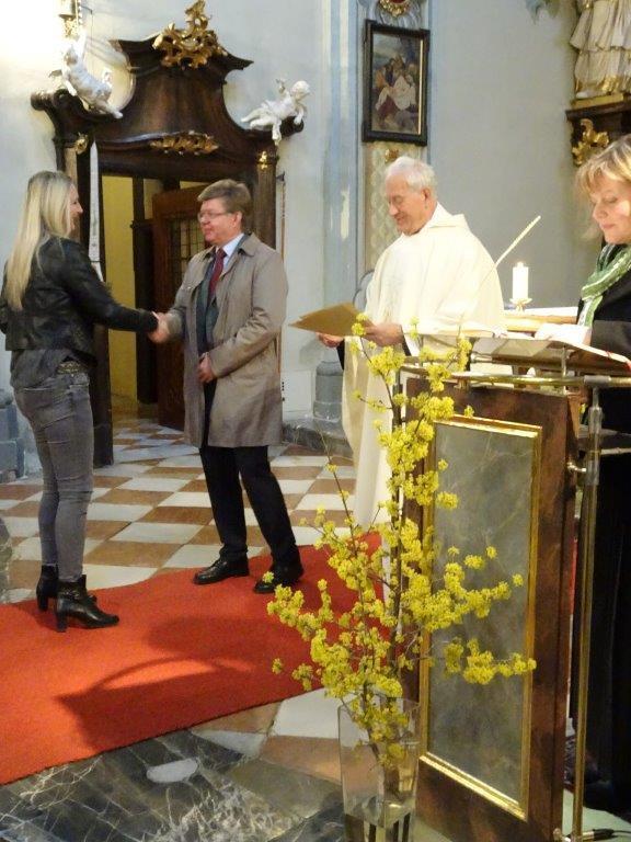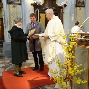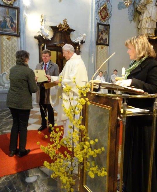 Am Weißen Sonntag wurden alle Caritas-Sammlerinnen und Sammler zur 8 Uhr-Messe in die Pfarrkirche eingeladen. Im Anschluss an den Gottesdienst nahm der Direktor der Caritas Steiermark, Mag. Herbert Beiglböck, unterstützt von der Regionalkoordinatorin Steiermark Mitte, Frau Sabine Spari und Pater Simon, die Verleihung der Urkunden vor, an alle fleißigen Frauen und Männer, die sich in den letzten 30 Jahren einmal oder mehrere Male im Dienst der guten Sache für Hilfsbedürftige gestellt haben. Auch an die bereits verstorbenen SammlerInnen wurde gedacht und ihnen postum der Dank ausgesprochen.