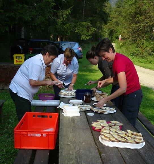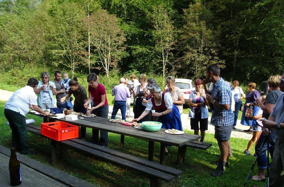 Zum Abschluss kredenzte die Familie Fuchs noch die traditionelle Bartholomä-Jause (Brot, Butter und Honig) auf und die Familie Plienegger spendierte die Getränke dazu.