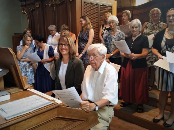 Für Frohnleiten war Franz Grasmugg Jahrzehnte lang der Organist schlechthin. Den sonntäglichen Gottesdiensten, den Taufen, Hochzeiten und auch Abschiedsgottesdiensten verlieh er einen festlichen Charakter. Mit seiner festen und sicheren Bassstimme diente er dem Chor von 1956 bis 1964 und von 1967 bis 2017 und begleitete auf der Orgel viele Chor-Orchester-Messen. Es war eine schöne Fügung, dass sich seine Gesangsbrüder und –schwestern bei ihm gemeinsam verabschieden konnten. Ihm hätte Pfarrer P. Simon am Ende des Festgottesdienstes eine Dankesurkunde von Bischof Wilhelm Krautwaschl in Würdigung seiner Verdienste überreichen wollen. Diesen Akt hat Gott, der Urheber der Stimmen und Klänge, übernommen.