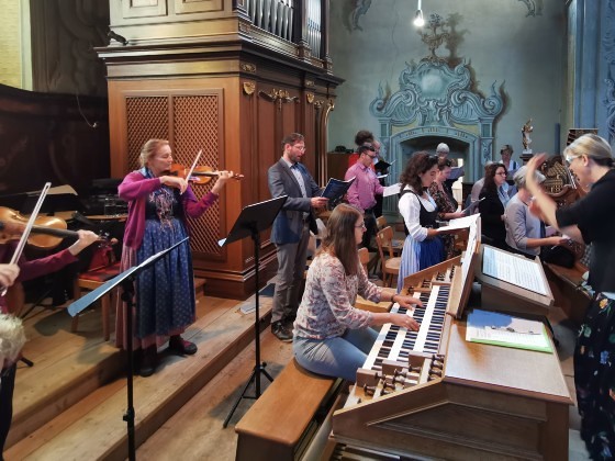 Wir konnten die „Missa in B“ (KV 275) von Wolfgang Amadeus Mozart wie geplant zur Aufführung bringen, allerdings in stark verkleinerter Besetzung: ungefähr der halbe Chor musizierte zusammen mit dem Solistenquartett Birgitta Wetzl, Elisabeth Weber, Markus Sölkner und Ewald Nagl das schwungvolle Werk in Begleitung eines Streichtrios unseres Orchesters und mit Christina Eichberger an der Orgel. Die feiernde Gemeinde und wir Ausführende selbst hatten große Freude an den schon so lange vermissten feierlichen Klängen einer Chor-Orchester-Messe!