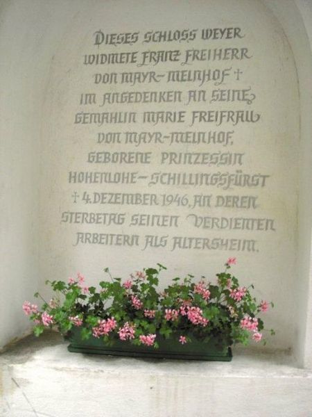 1946 widmete Franz IV. Mayr-Melnhof (+ 1957) das Schloss im Angedenken an seine Gemahlin an deren Sterbetag seinen verdienten Arbeitern als Altersheim. Dies geht aus einer vorhandenen Inschrift an der Außenmauer der Kapelle hervor. 1990 wurde das denkmalgeschützte Gebäude vom Gemeinnützigen Steirischen Wohnungsunternehmen erworben, generalsaniert und im November 1995 wieder seiner Bestimmung als Alten- und Betreuungsheim übergeben.