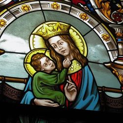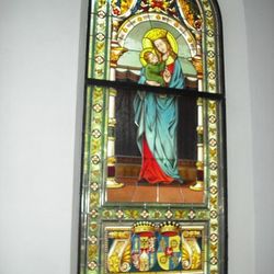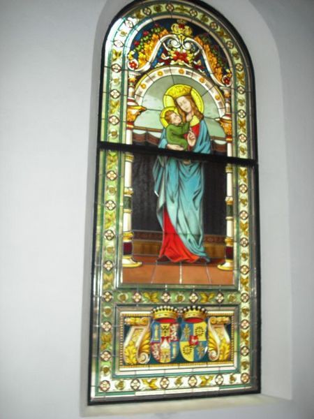 Das Prunkstück dieser Kapelle sind die beiden wunderbaren bunten Glasfenster, auf denen Maria mit dem Jesuskind bzw. der Heilige Josef dargestellt sind. Sie wurden 1991 von den Mitarbeitern der Mayr-Melnhof-Betriebe anlässlich des 70. Geburtstages von Carl Anton und Marie Goess-Saurau gewidmet, beide Jahrgang 1921 und treue Bekenner des katholischen Glaubens.