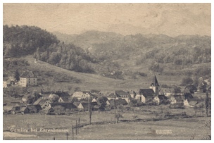 Der Name des Ortes ist slawischen Ursprungs, ist vom Wort „gom = Hügel“ abgeleitet und bezieht sich auf die erwähnten Hügelgräber, vielleicht aber auch auf die zahlreichen Hügel dieses Landstriches, die den Windischen Büheln ihren Namen gegeben haben.