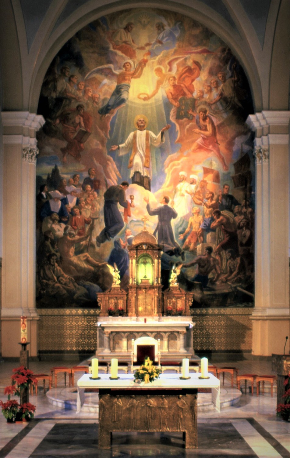 Der im Neo-Renaissance-Stil geschaffene Hochaltar in Marmorausführung stammt aus der Gründerzeit der Kirche. Darauf sitzt der vergoldete Tabernakel mit seitlichen Aufsätzen. Darüber ist ein goldener Baldachin zur Aussetzung des Eucharistischen Herrn angebracht.