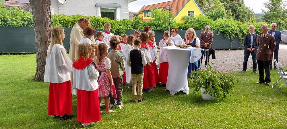 Gemeinsam mit der Pfarre Tobelbad feierten wir das Fronleichnamsfest beim Dorfkreuz in Lieboch. Der auferstandene Herr Jesus, der in der Gestalt des Brotes gegenwärtig ist, steht im Mittelpunkt.