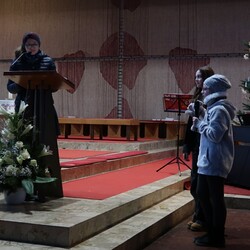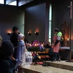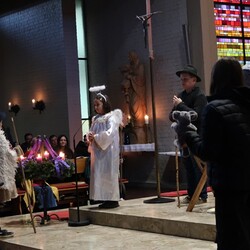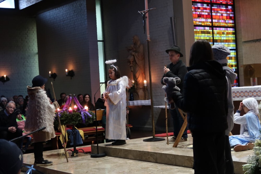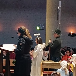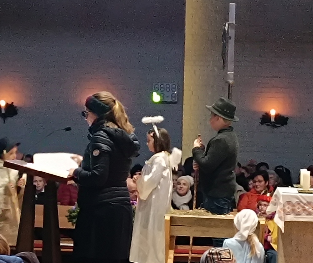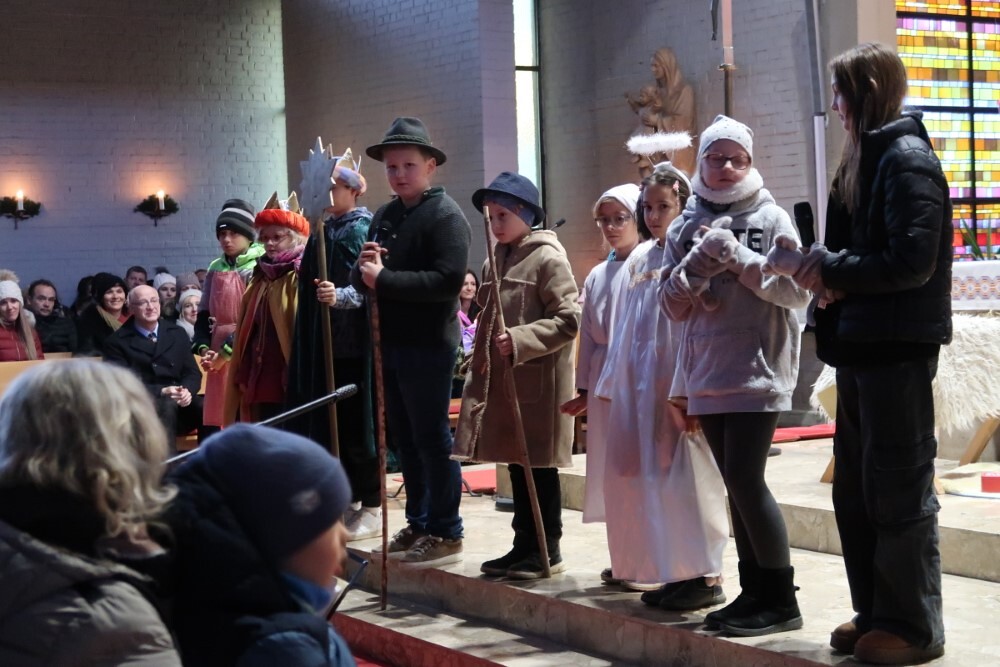 Christina Fegerl hat mit einigen Kindern die Weihnachtsgeschichte für die vielen Besucher der Kinderkrippenfeier erlebbar gemacht.