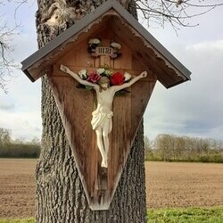 Besonders schön ist dieser Platz, weil er von großen und alten Bäumen umgeben ist. In dieser Andacht baute ich eine Brücke von der Linde, die mein Geburtstagsbaum und die Pflanze des Jahres 2025 ist, und Maria, die fest verwurzelt im Vertrauen zu Gott die Schätze des Himmels empfängt, und Gott sichtbar und spürbar in unsere Lebenswelt hineinträgt.