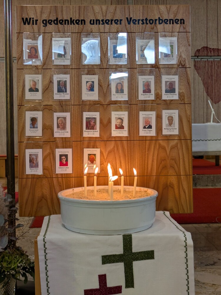 gedacht. Für alle wurde bei der Gedenktafel eine Kerze entzündet und Vikar Norbert Glaser fand wie immer gute und tröstende Worte für die speziell zu dieser Messe eingeladenen Hinterbliebenen. Ein Danke allen Mitwirkenden dafür.
