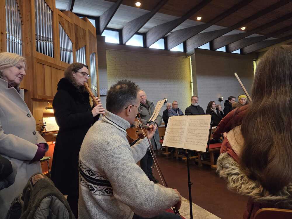 Der Kirchenchor, begleitet von Flöte, Geigen und Orgel sorgte für weihnachtliche Stimmung.