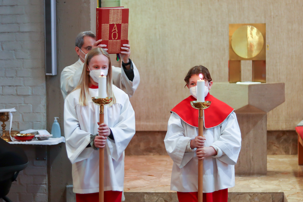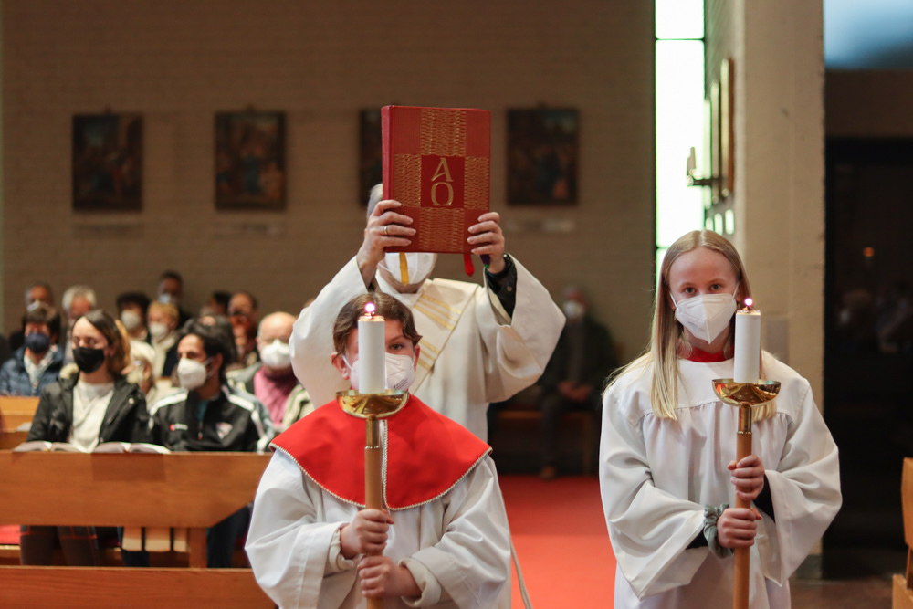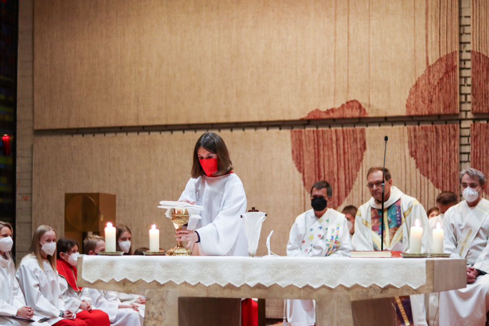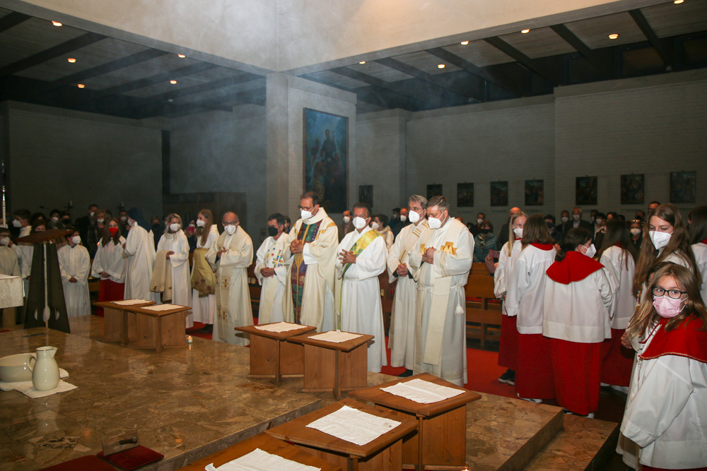 In einer etwas anders gestalteten Fußwaschung wurde jenen gedacht, die nicht oder nicht mehr am Leben der Kirche teilnehmen können oder möchten. Die Stühle blieben leer. Symbolisch für Rand- und Zielgruppen und jene Menschen, die unsere Gesellschaft mitprägen, wurden Kerzen entzündet. Als Zelebranten fungierten unsere drei Priester, drei Diakone sowie alle Pastoralreferentinnen und Referenten, welche den Sendungsauftrag im Seelsorgeraum Kaiserwald erfüllen.