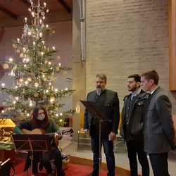 Erwin Schörgi, Bernhard Breitegger und Gernot Guttmann haben mit Abstand einige Familien mit ihrem Besuch als Nikolaus erfreut. Es wurde im Freien gefeiert, mit Feuerschalen zum Wärmen, in Hauseingängen und festlich beleuchteten Gärten.