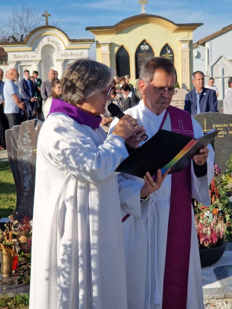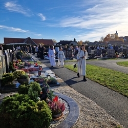 Bei strahlendem Herbstwetter segneten Diakon Franz Habith und Wort-Gottes-Feier- Leiterin Christa Habith die Gräber auf unserem Friedhof.