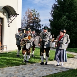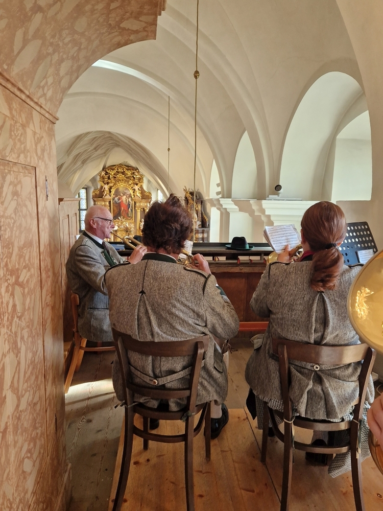 Musikalisch gestaltete eine Abordnung der MUZ von der Empore aus die heilige Messe - und auch danach beim Totengedenken mit Kranzniederlegung vor dem Kriegerdenkmal waren die Musiker*innen zur Stelle.