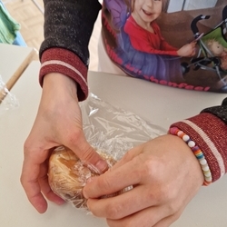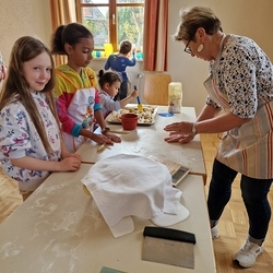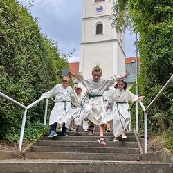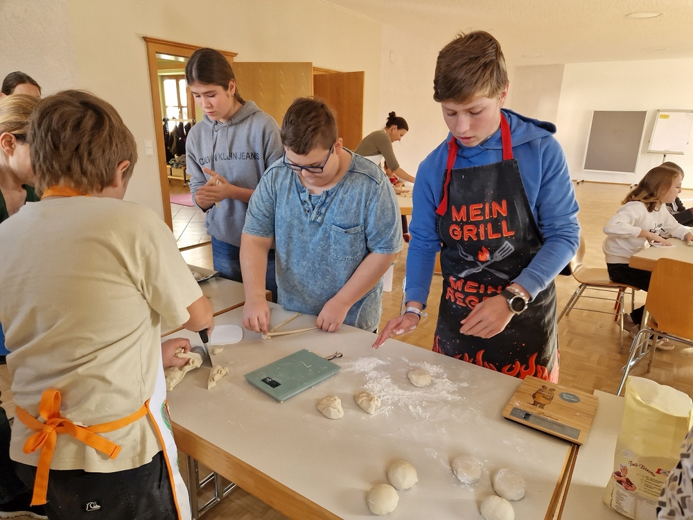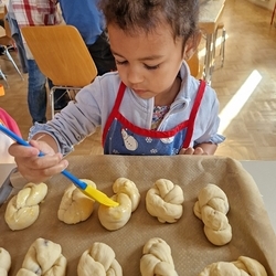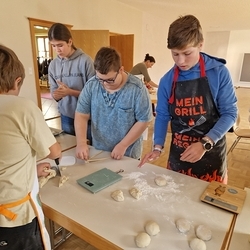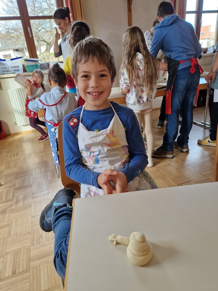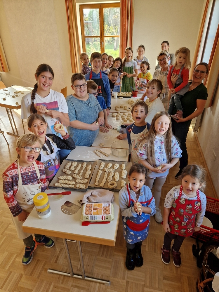 Am 31. Oktober fanden sich auch heuer wieder viele große und kleine Bäckerinnen und Bäcker im Pfarrheim ein, um aus 12 kg Germteig herrliche Allerheiligenstriezerl zu formen. Sieben Erwachsene sowie alle Minis und eventuell zukünftige Minis (insgesamt 16 Kinder) waren von 9 -11 Uhr mit Feuereifer dabei.