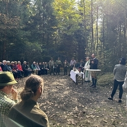 Die Idee war, die Jagdgesellschaften mit Ing. Manfred Froschhauser, die Gemeinde mit Bürgermeister Dr. Matthias Pokorn und die Pfarre mit dem leitenden Pfarrer des Seelsorgeraums Kaiserwald, Lic. theol. Claudiu Budău, für eine Premstättner Hubertusmesse beim Jägerkreuz im Kaiserwald am 11. Oktober 2025 zusammenzuspannen. Das Zusammenspiel hat wunderbar geklappt. Es war alles gut vorbereitet und sehr gelungen. Danke!