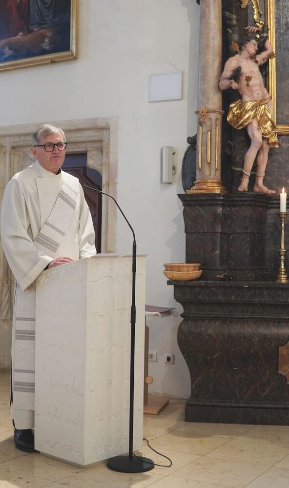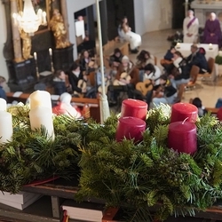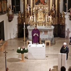 Gedanklich führte uns Vikar Norbert auf die Spur, was der Vers „Seid also wachsam!“ aus dem Evangelium (Mt 24, 42) für uns heute heißen kann - und wie die Vision des Jesaja, dass Schwerter zu Pflugscharen und Lanzen zu Winzermessern umgeschmiedet werden (Jes 2, 4), in unserer Welt ein Stück weit Wirklichkeit werden könnte. Es kann nur gelingen, wenn „Menschen ihr Lebensnavi in Jesus verankern“, so Vikar N. Glaser in seiner Predigt.