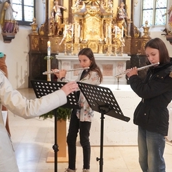 Streich- und Volksmusikinstrumente bereicherten mit schönen Weisen, vorgetragen von Schülerinnen und Schülern der Musikschule Premstätten, den Gottesdienst. Als Danke für die musikalische Gestaltung gab es, schon traditionell, für alle Musiker*innen eine süße Aufmerksamkeit.