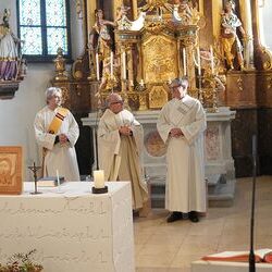 Der neu geweihte Diakon Johannes Chum feierte zusammen mit Vikar Norbert Glaser und Diakon Michi Zepf seine „Premiere“ als Diakon in seiner Pfarre, in der er schon seit gut 30 Jahren beheimatet ist.