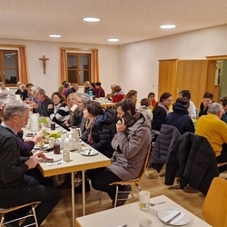 In dieser besonderen Stimmung fand man sich nach der heiligen Messe gerne im Pfarrheim zum Pfarrkaffee ein, den ein kleines Team liebevoll vorbereitet hatte. Zuvor konnte man anlässlich des Sonntags der Weltkirche - von den Minis angeboten - noch Schokopralinen kaufen, um sich und anderen Gutes zu tun!