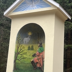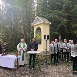 Die Rollenverteilung war ausgewogen. Von den Jägern der Jagdgesellschaften kamen die Grußworte, die gesprochenen Teile der Messe und die Einladung zum Zusammensein mit einer kräftigenden Bewirtung nach der Feier. Der Bürgermeister der Gemeinde Premstätten erzählte von den Leistungen anlässlich der Renovierung und von der Geschichte des Jägerkreuzes, und schließlich segnete in seinem Beisein Pfarrer Claudiu Budău den neu gestalteten Bildstock. Der Pfarrer führte dann durch den Ruf der Jagdhornbläser in die Geheimnisse des Waldes ein und sprach sehr lobend und begeistert in seiner Predigt über das Engagement der Jäger. Der Steirische Jägerchor gab mit der Neuberger Jagdmesse der Feier musikalischen Glanz.