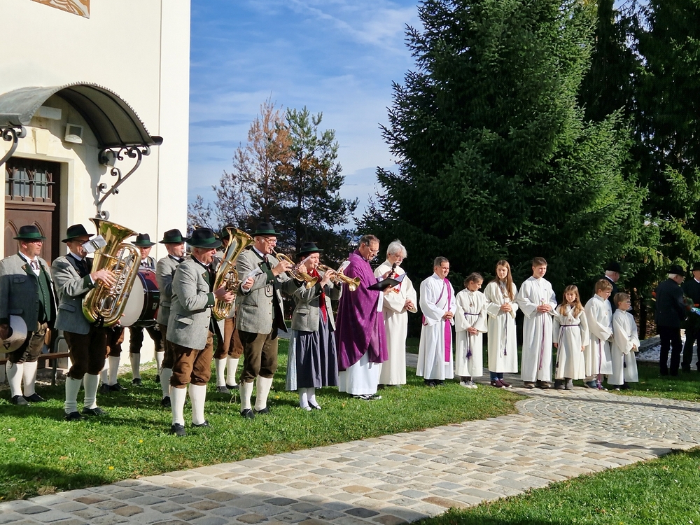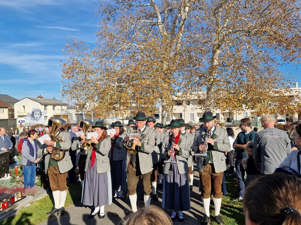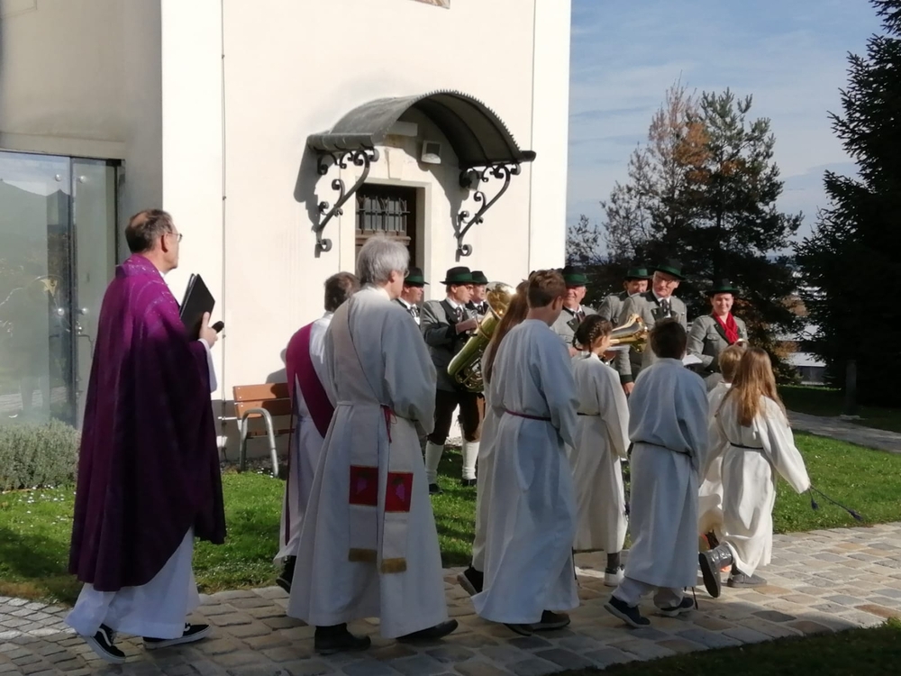 Zuvor wurde in schönen Texten und Gebeten, musikalisch umrahmt von der Marktmusik Unterpremstätten-Zettling, aller Verstorbenen gedacht. Auch wurden die Namen der im vergangenen Jahr heimgegangenen Personen nochmals laut ausgesprochen. Der aufsteigende Weihrauch verleiht den Verstorbenen besondere Würde und möge unsere Gebete zu Gott emportragen.