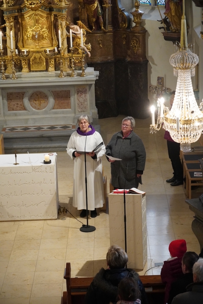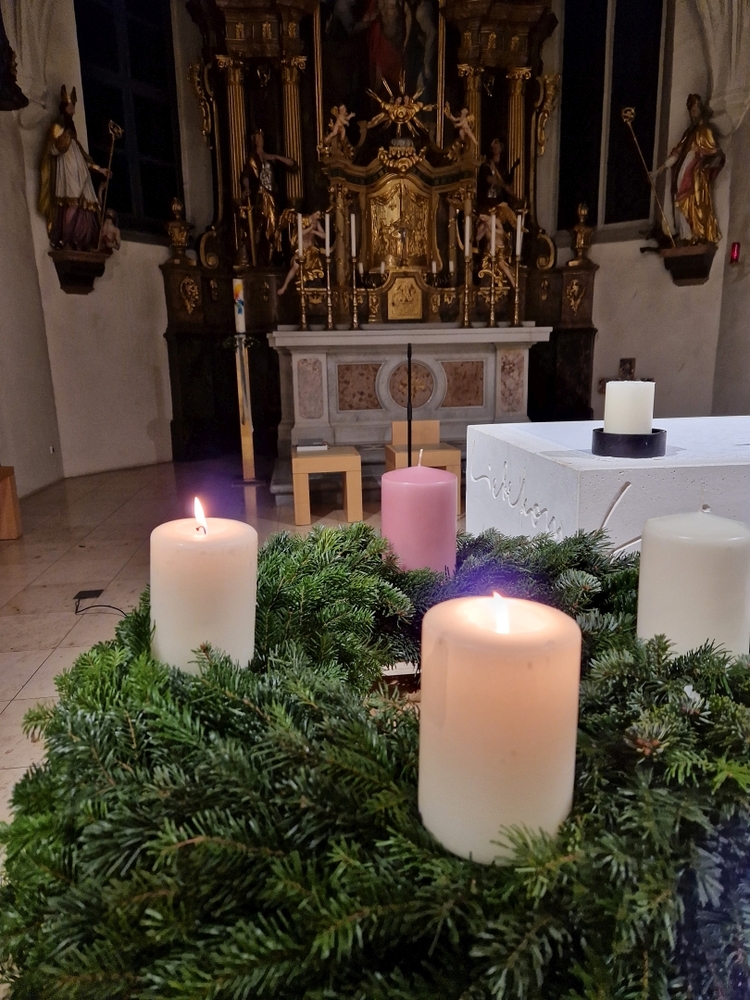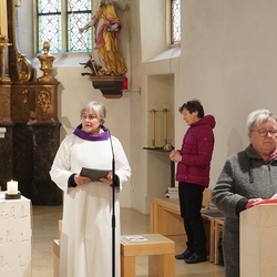 Bei der Wort-Gottes-Feier am Sonntag sprach WGF-Leiterin Christa Habith in Bezug auf Jesaja von der uralten Sehnsucht der Menschen nach Frieden und Gerechtigkeit. Nur durch Umkehr, siehe Johannes der Täufer (Mt 3, 1-12), kann Veränderung geschehen und Gott in uns ankommen. Umkehren heißt Haltungen überdenken, Altes verlassen und die Herzen öffnen.