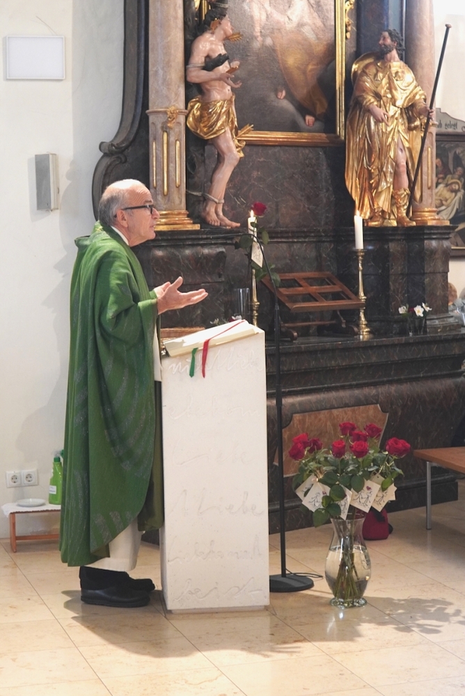 Viele Jahre oder Jahrzehnte als Ehepaar Hand in Hand zu gehen, ist ein Geschenk, wofür wir Gott danken dürfen. Seine Liebe, so Vikar Norbert Glaser in seiner Predigt, „wartet nicht in einem Präsidentenpalast, bis man zu ihr vordringt, sie macht sich von sich aus auf den Weg zu uns und bleibt“. Sie ist ein Universum, in dem wir uns in Gottes Hand geborgen wissen dürfen.