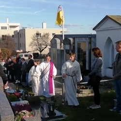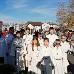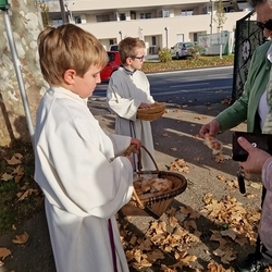 Zum Abschluss boten die bei der Feier fleißig assistierenden Minis an den Friedhof-Ausgängen gegen freiwillige Spende ihre am Vortag gebackenen Allerheiligenstriezerl an, die im Nu ausverkauft waren!