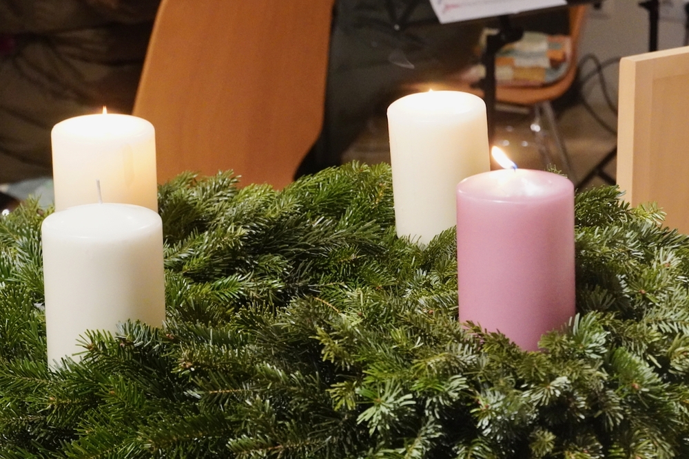 Die Vorfreude steht im Mittelpunkt des Gaudete-Sonntags! Daher erstrahlt als dritte Kerze die rosafarbene, die den hellen Charakter dieses Sonntags betont.