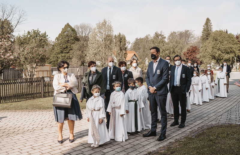 12 Buben und Mädchen der 1. und 2. Stufe der VS Weinburg haben am Samstag, dem 8. Mai 2021 in der Pfarrkirche St. Veit am Vogau zum ersten Mal die hl. Kommunion empfangen. Jesus Christus verbindet Himmel und Erde, stärkt mit „seinem Leib“ die Gläubigen und schafft Gemeinschaft mit Gott und untereinander.